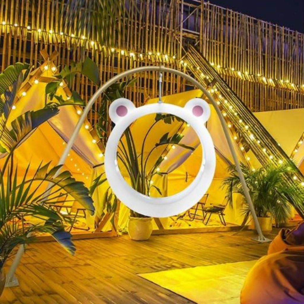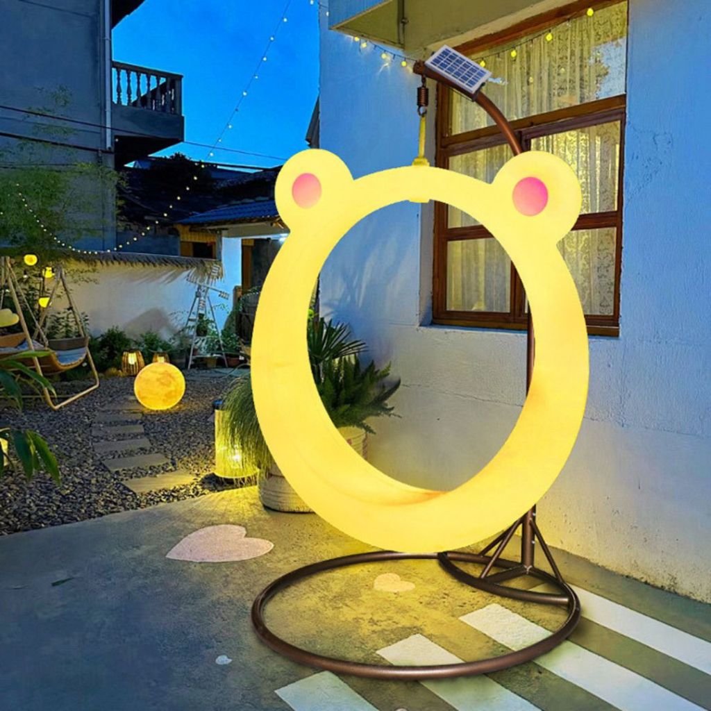 Xích Đu Đèn LED Thỏ Gấu Hoạt Hình Dễ Thương Chuyển Màu Đa Dạng Chống Thấm Tốt Sân Vườn