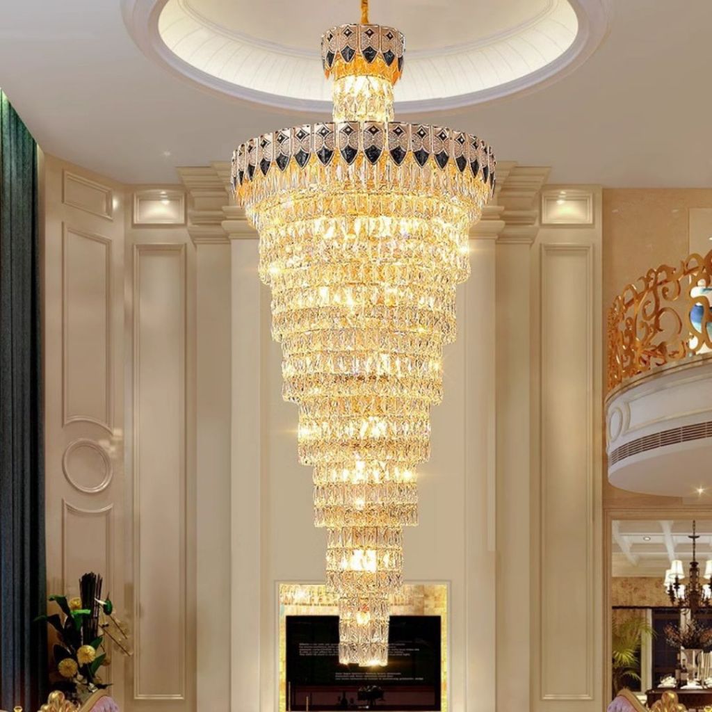 Đèn Chùm Pha Lê Lớn 2 Tầng Trang Trí Căn Hộ Duplex, Sảnh Khách Sạn, Hội Nghị Tiệc Cưới