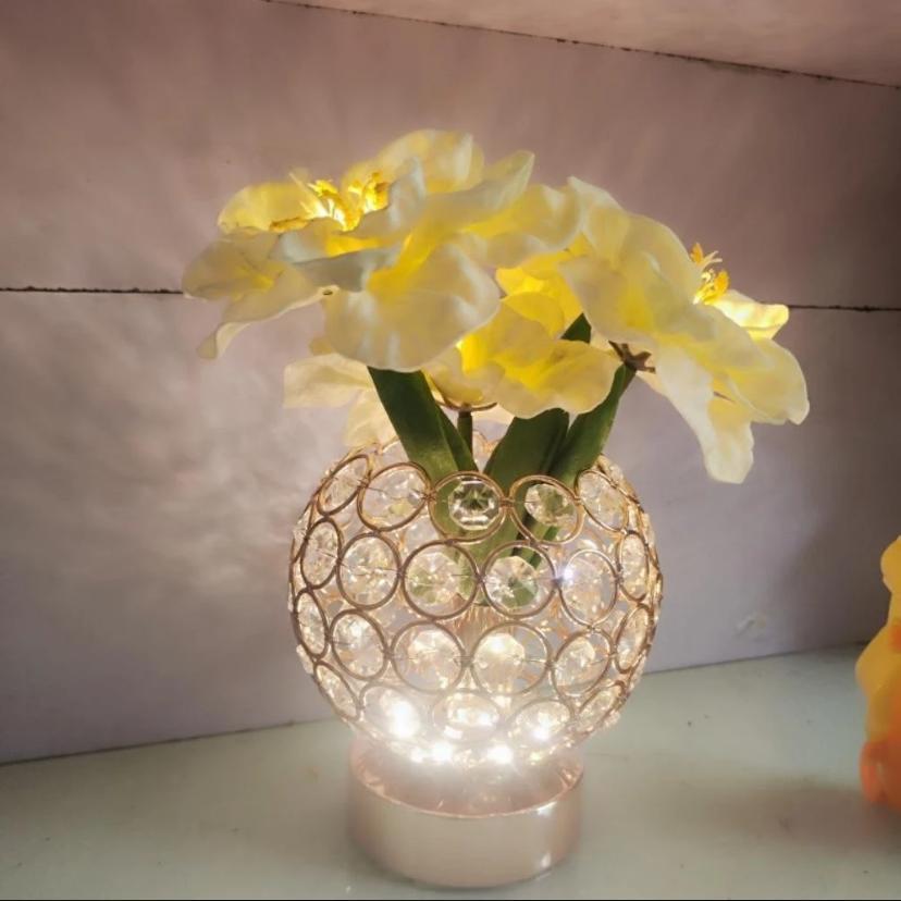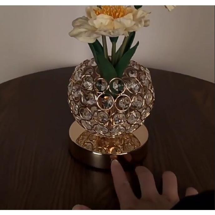 Đèn Bàn Pha Lê Hoa Mẫu Đơn Màu Vàng, Công Tắt Cảm Ứng 3 Chế Độ Sáng Decor Bàn Làm Việc