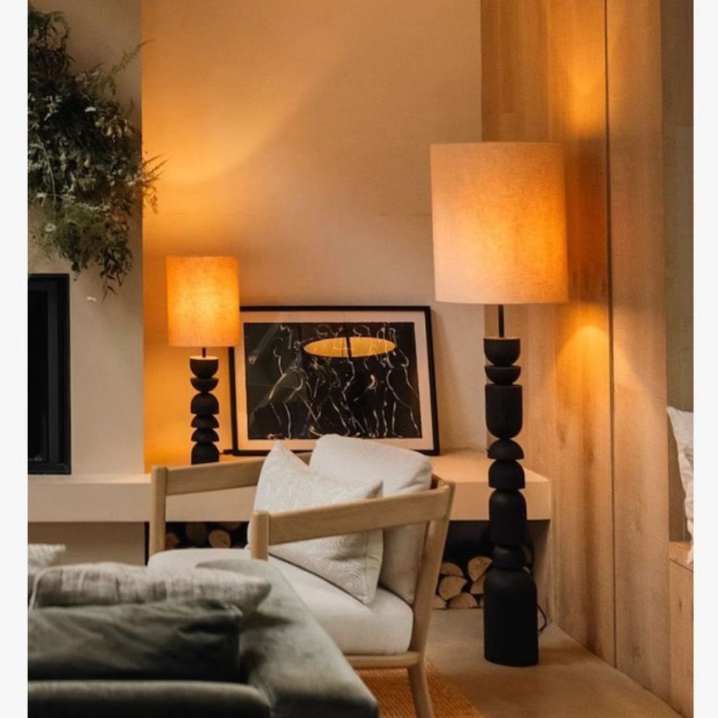 Đèn Cây Đứng Gỗ Nguyên Khối Chao Hình Trụ, Đèn Sàn Cao Cấp Retro Decor Cạnh Đầu Giường, Sofa
