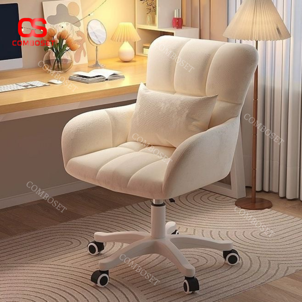 Ghế Xoay Tựa Lưng Phòng Học Màu Trắng, Hồng Dễ Thương Decor Không Gian Làm Việc