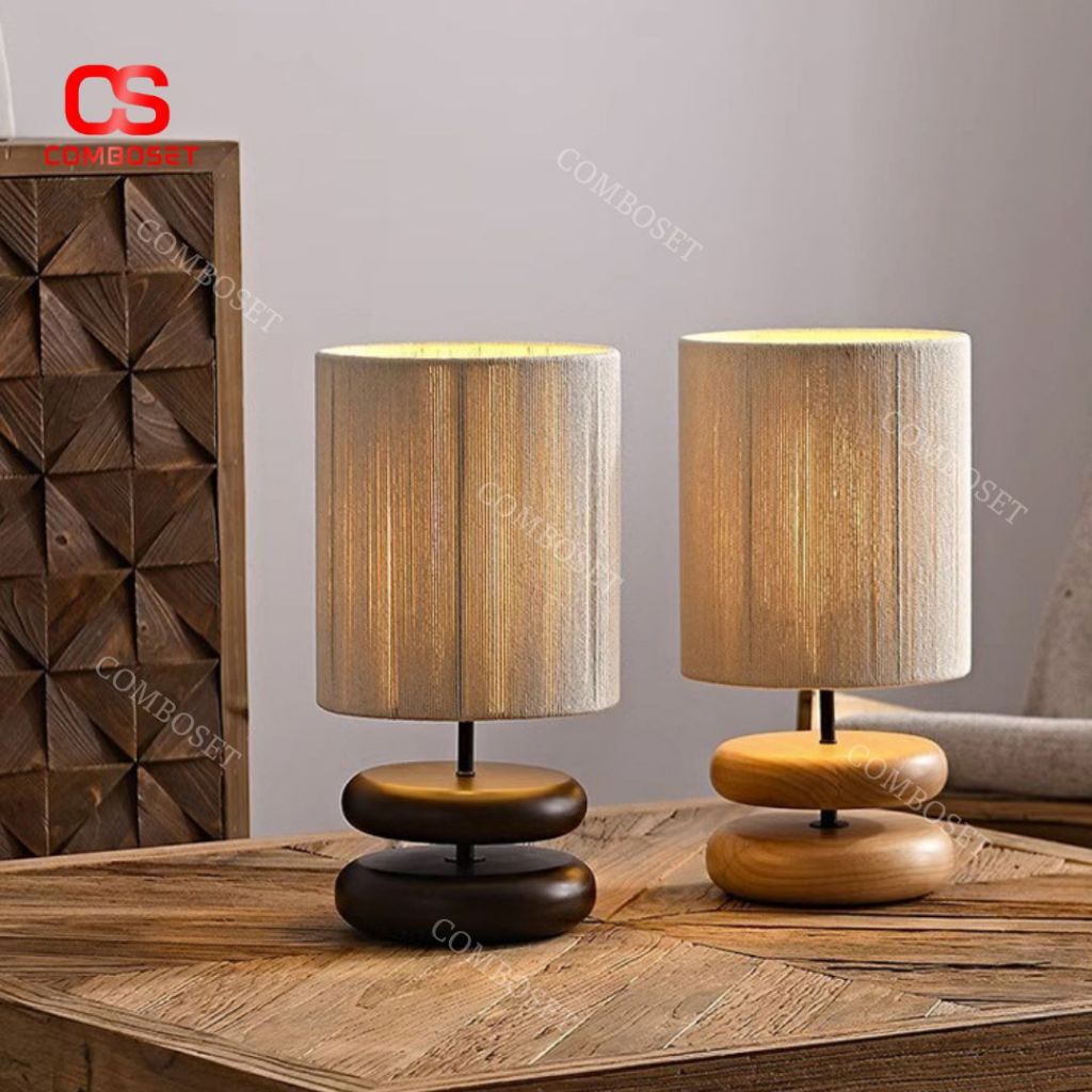 Đèn Bàn Gỗ Tròn Dẹt Cổ Điển Retro Trang Trí Phòng Khách, Bàn Làm Việc, Phòng Trà Cổ Xưa