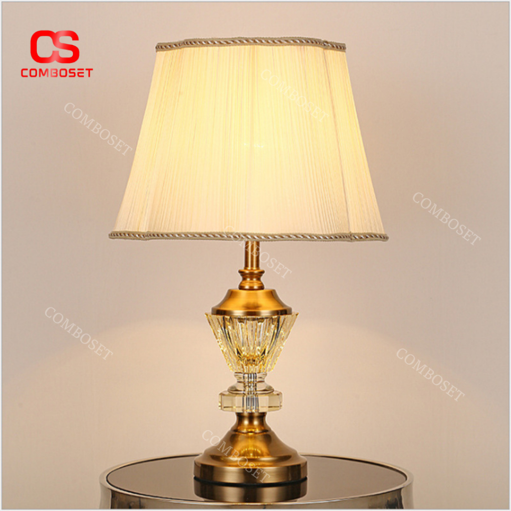 Đèn Bàn Ngủ Pha Lê K9 Châu Âu Chao Vải Trắng Thân Đèn Mạ Vàng Sang Trọng Quý Tộc