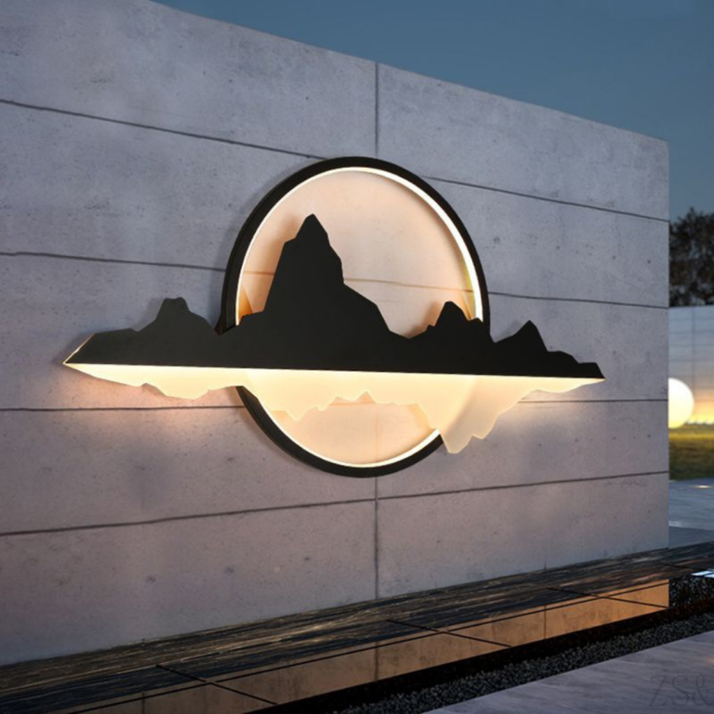 Đèn Tường Sân Vườn Mặt Trăng Acrylic Phong Cảnh Núi Rừng Hùng Vĩ Trang Trí Sân Vườn