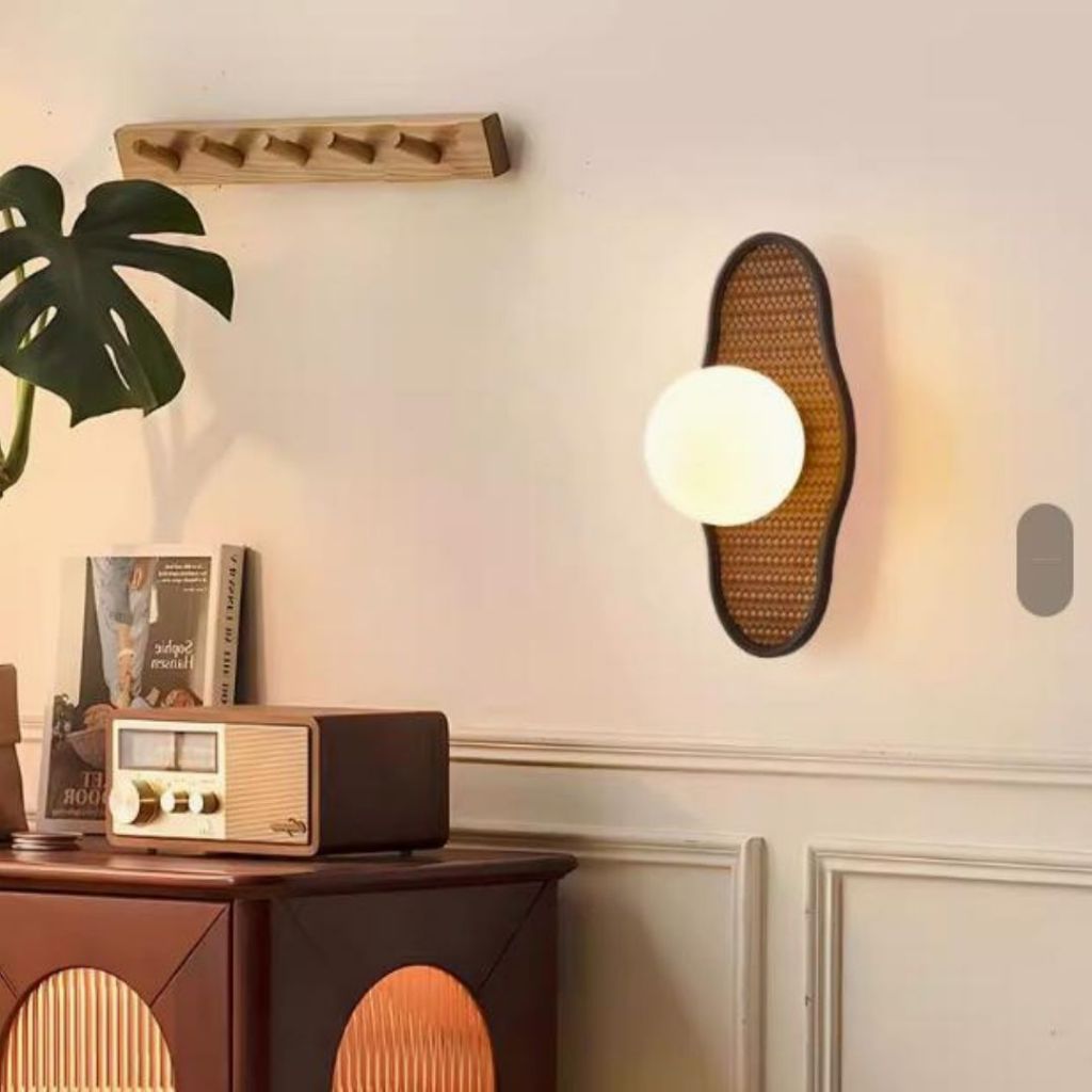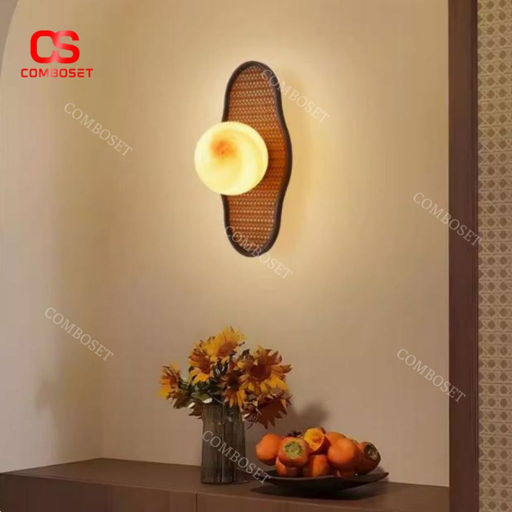 Đèn Tường Gỗ Bóng Thuỷ Tinh Tròn Phong Cách Cổ Điển Trang Trí Phòng Khách Phòng Ngủ