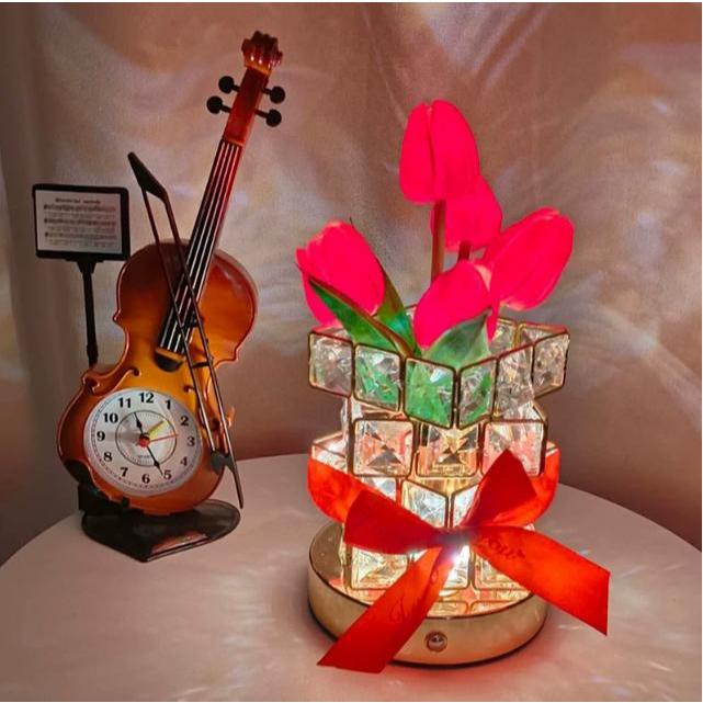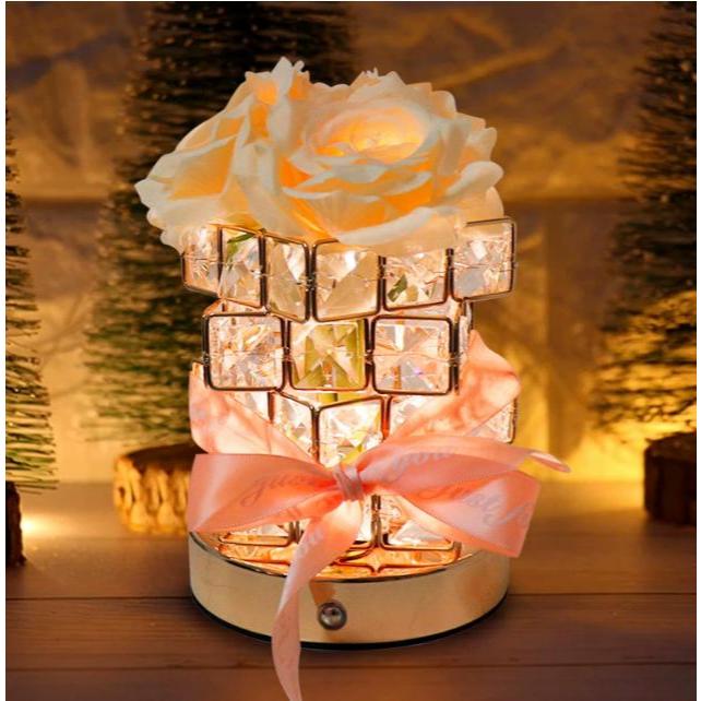 Đèn Bàn Pha Lê Bông Hoa Bằng Vải, 3 Chế Độ Sáng, Cổng Sạc USB, Làm Quà Tặng Sinh Nhật, Valentine