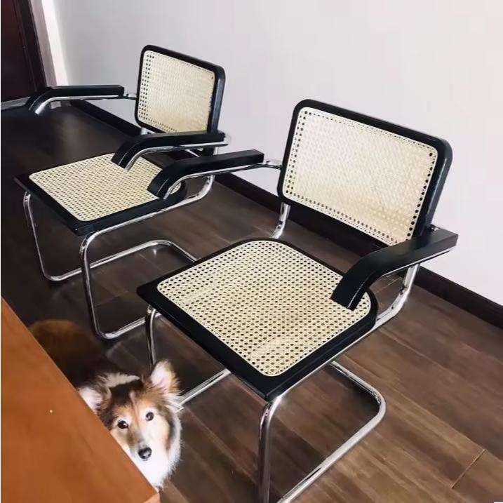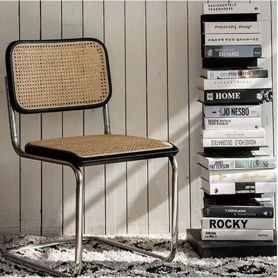 Ghế Ăn Khung Thép Mạ Chrome Nệm Da Tựa Mây Retro Decor Bàn Ăn, Bàn Làm Việc
