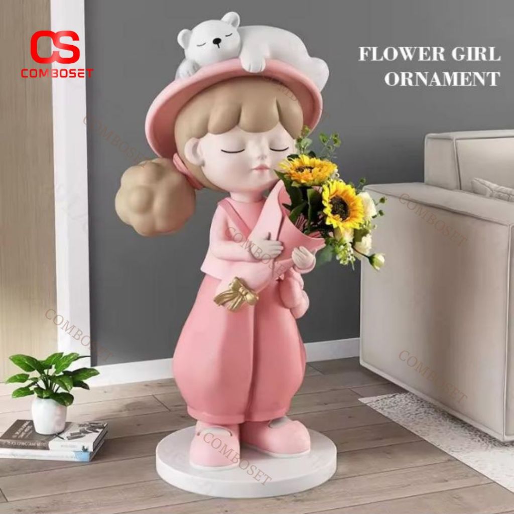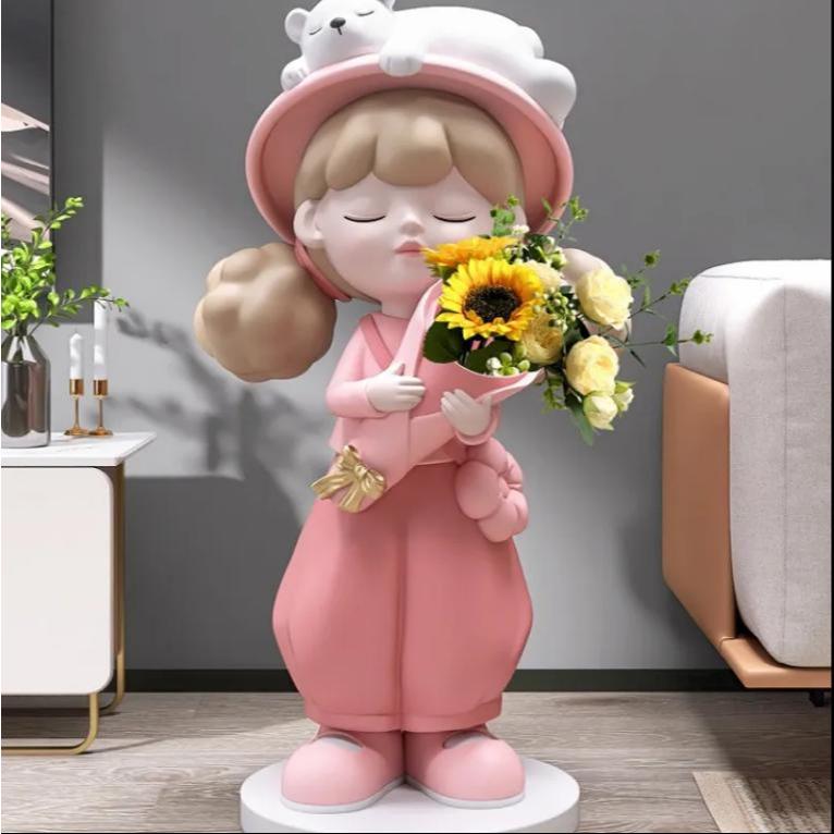 Tượng Bé Gái Cầm Hoa Phong Cách Hàn Quốc Đáng Yêu Trang Trí Nội Thất Ấn Tượng