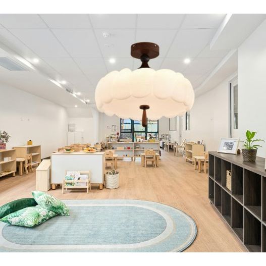 Đèn Trần Chao Nhựa PE Thân Sắt Sơn Vân Gỗ, Chuôi Gỗ Tự Nhiên 3 Chế Độ Sáng Cho Phòng Ngủ