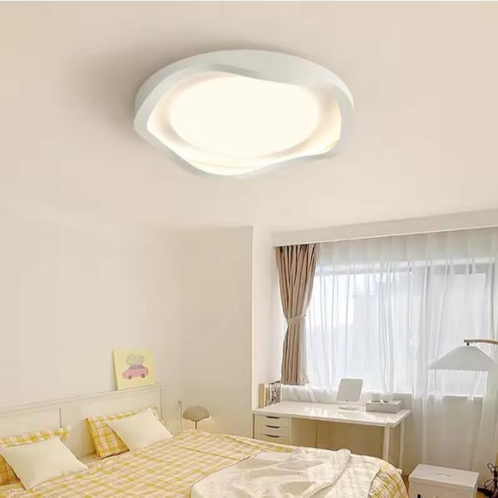 Đèn Ốp Trần Chao Nhựa ABS Trắng Đúc Nguyên Khối Thân Sắt Cứng Cáp, 3 Chế Độ Sáng Kiểu Dáng Uốn Lượn