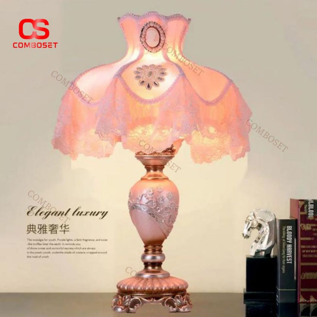 Đèn Bàn Vải Ren Hồng Ngọt Ngào Lãng Mạn Phong Cách Hoàng Gia Châu Âu Cổ Điển Độc Đ áo