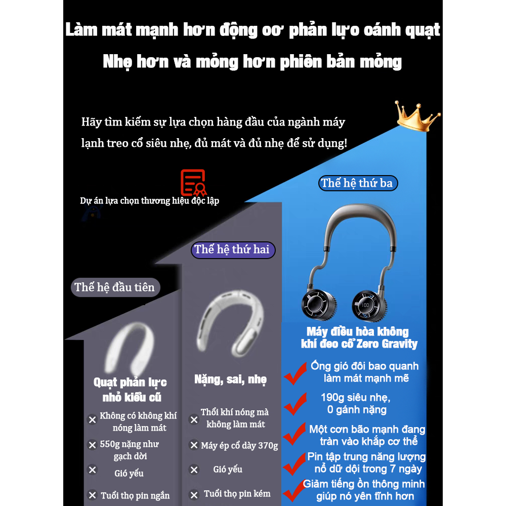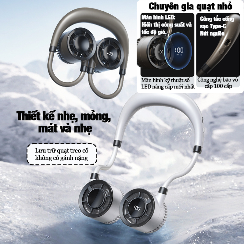 Bảo hành 3 năm / Quạt đeo cổ 4 tốc độ Có thể gập lại OLED Màn hình hiển thị công suất/tốc độ gió Neck fan 16 Giờ