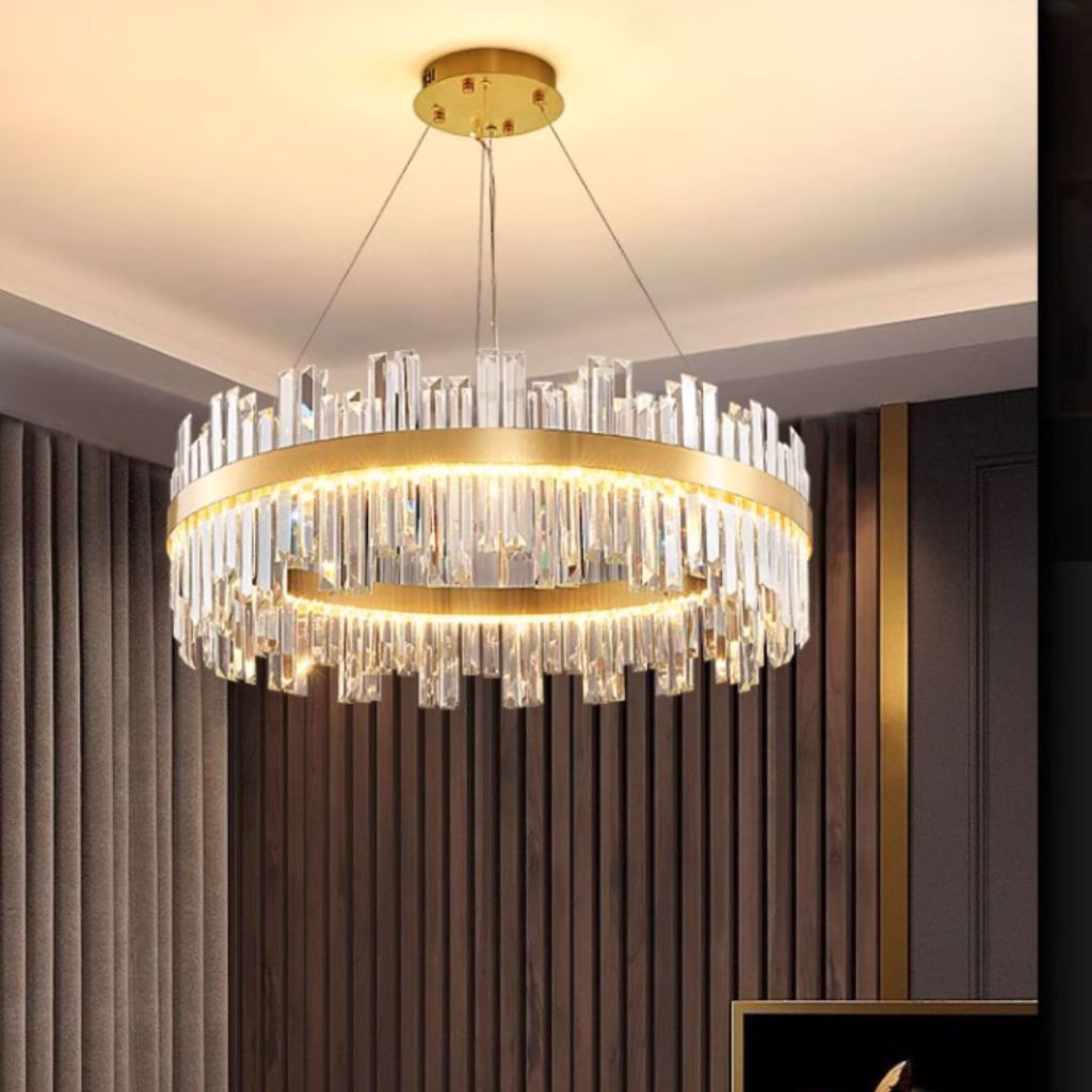 Đèn Chùm Tròn Pha Lê Thả Trần Cao Cấp, Sang Trọng, Đèn Thả Pha Lê Bắc Âu 3 Chế Độ Màu