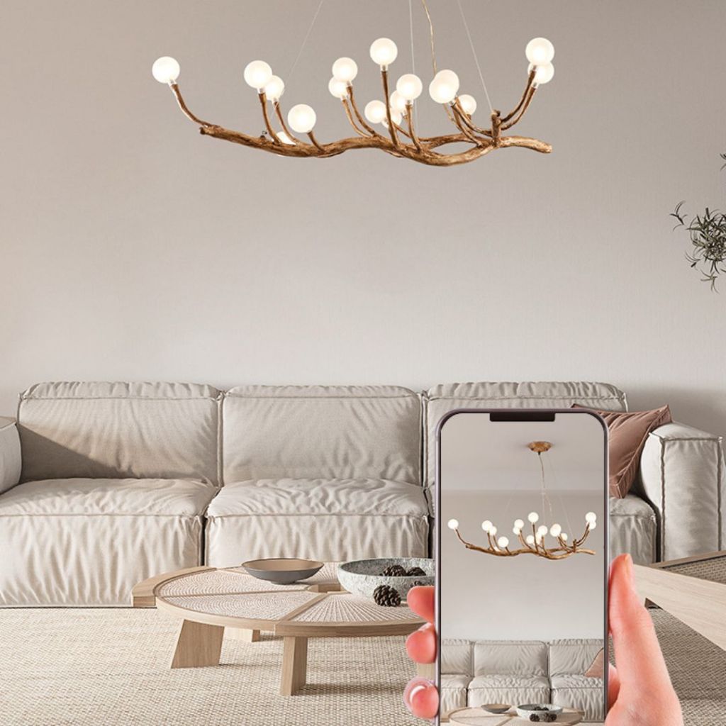 Đèn Chùm Thả Nhánh Cây Nghệ Thuật, Đèn Thả Bàn Ăn Dài Cao Cấp Phong Cách Wabi-Sabi
