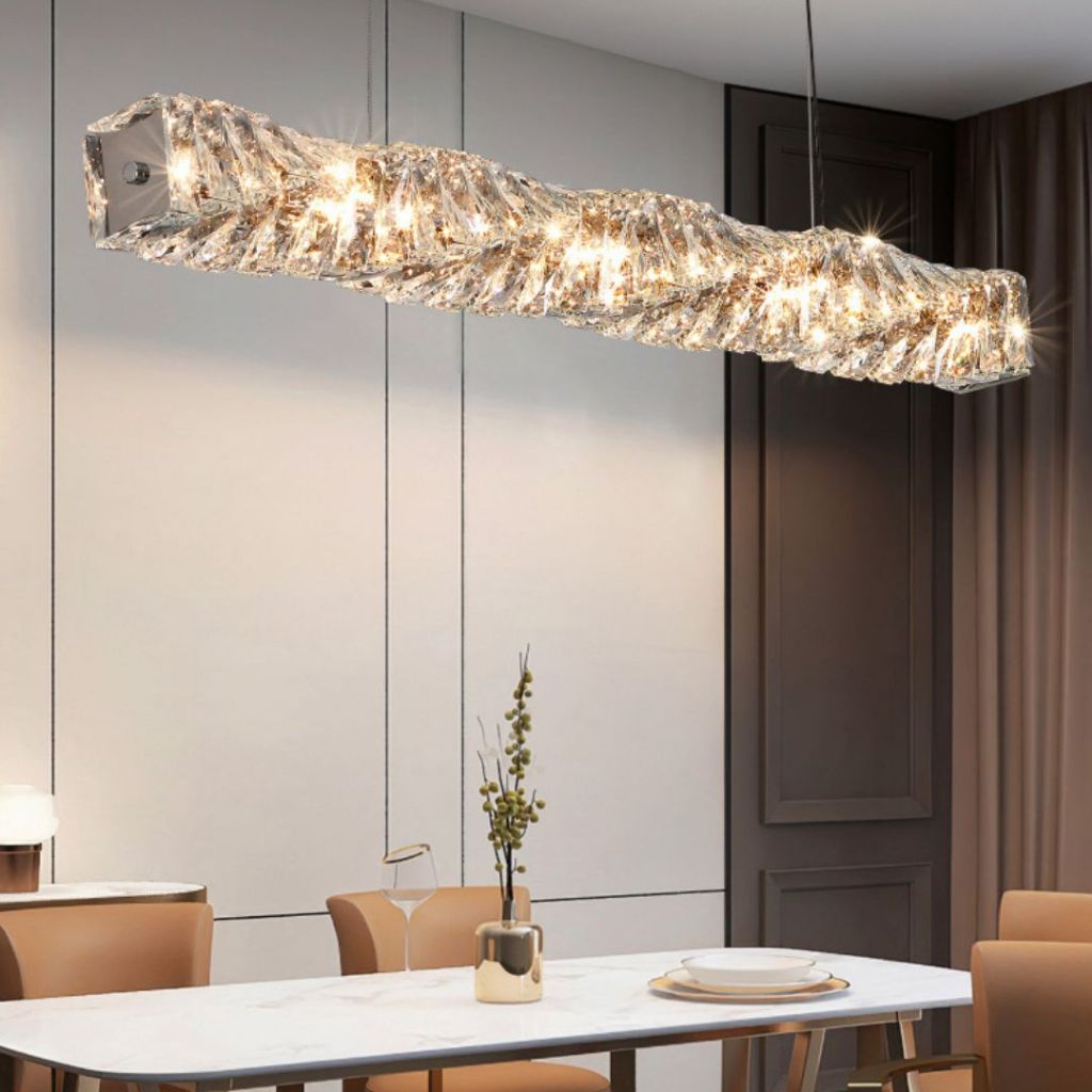 Đèn Thả Pha Lê Xoắn Nguyên Khối Dành Cho Phòng Ăn, Đèn Thả Nhà Hàng Dải Dài 3 Chế Độ Màu