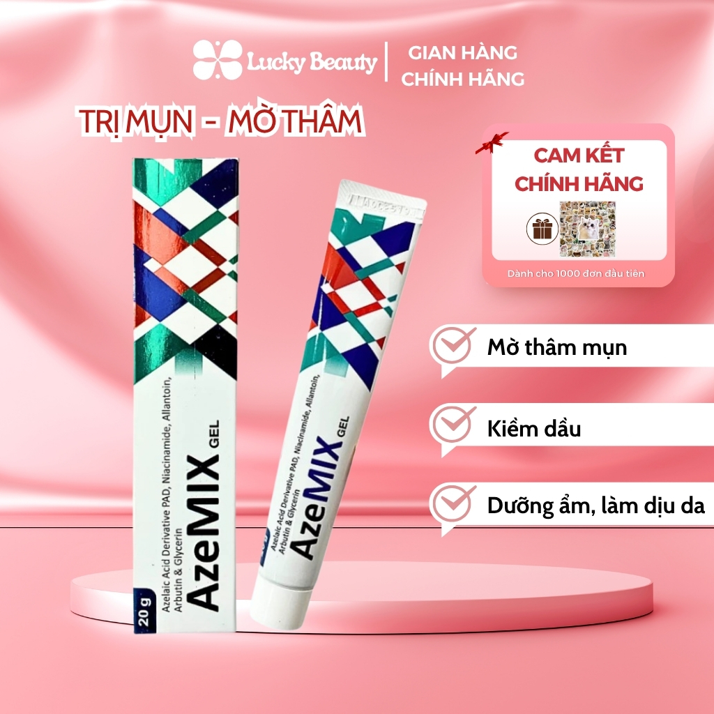 Azemix Gel, Azelaic Acid 20%, Niacinamide - Hỗ Trợ Mờ Thâm, Sáng Da, Ngừa Mụn, Phục Hồi Làn Da (Tuýp 20g)