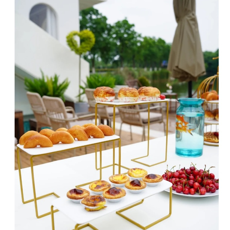 Set 3 kệ bánh cao thấp đĩa sứ khung vàng đĩa rời Trắng/Vàng Decor Sinh Nhật,Party,Teabreak