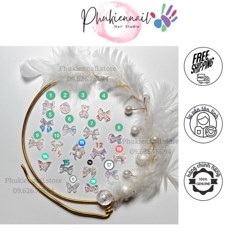 Nơ nhựa trong màu AB set 5 nơ