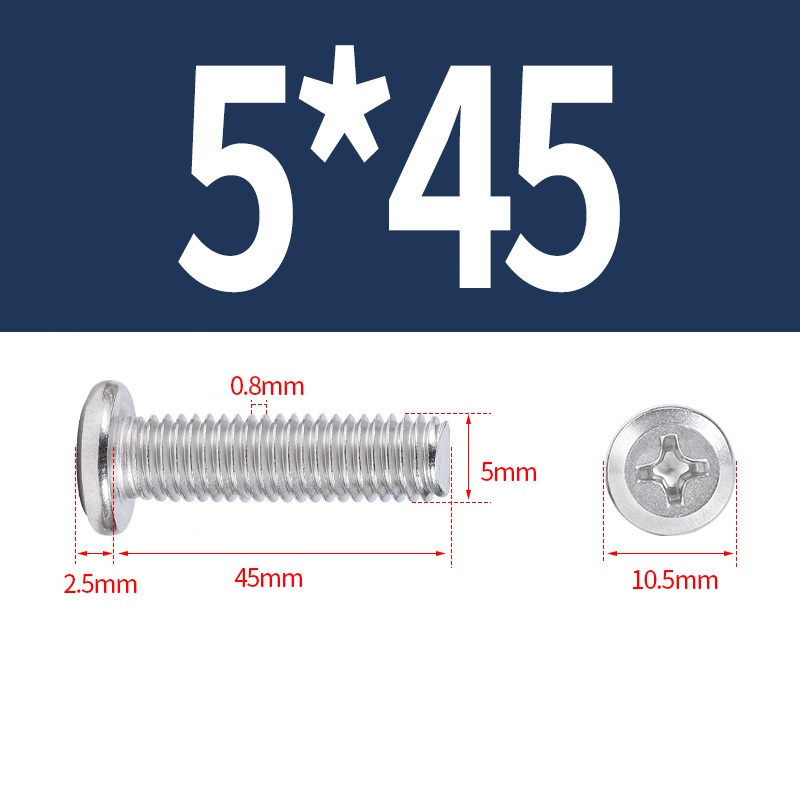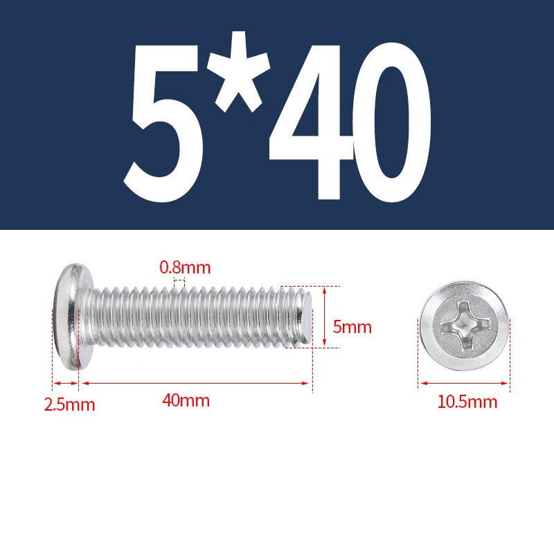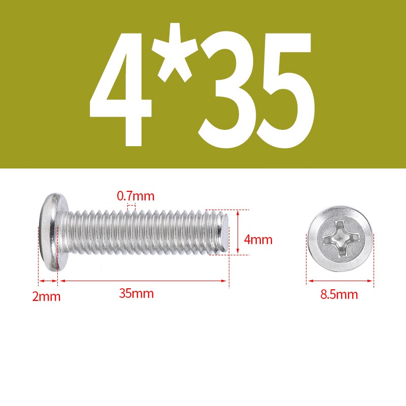 M2 M2.5 M3 M4 M5 Bu lông đầu phẳng lớn bằng thép không gỉ 304 Bộ vít Phillips Bộ máy tính Bu lông kim loại vít