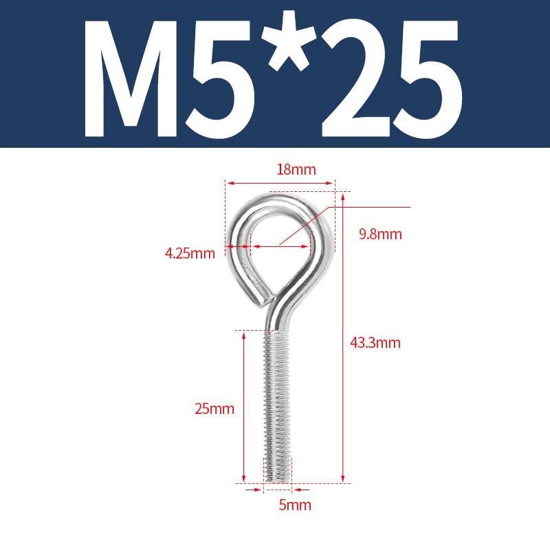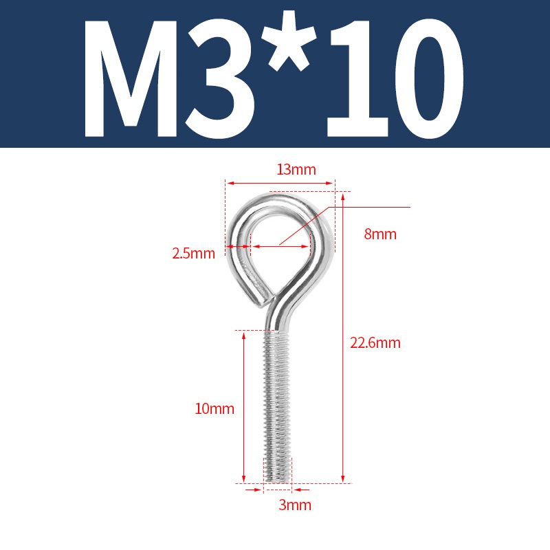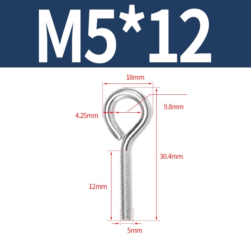 M3 M4 M5 M6 Cừu Mắt Vít Eyebolt Thép Không Gỉ 304 Móc Vòng Bu Lông Nâng Mắt Vít Bu Lông