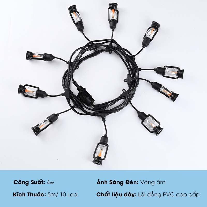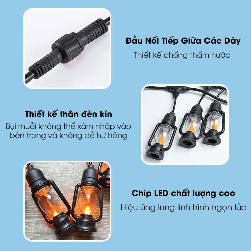 Dây Đui Đèn Dầu Hình Ngọn Lửa, Dây LED Trang Trí Ngoài Trời Chống Thấm Nước 5m10 LED dùng cho quán cafe, trà chanh, vườn