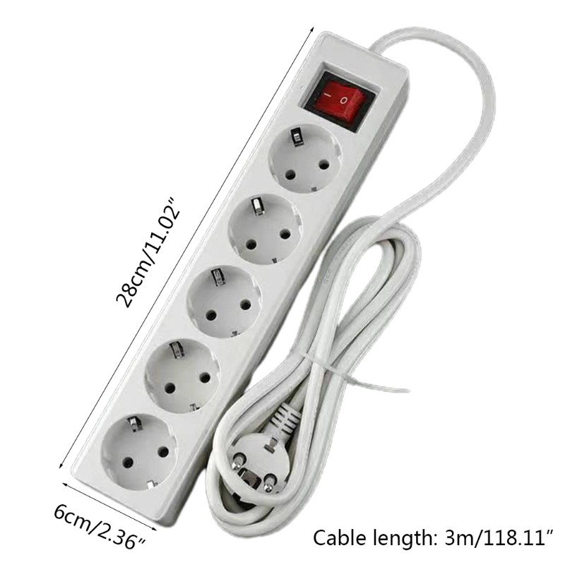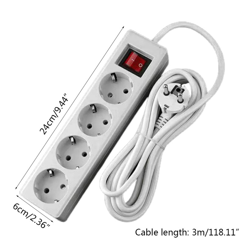 EU Standard German Type Power Strip 3/4/5 Sockets in a Row Flat Adapter Switches