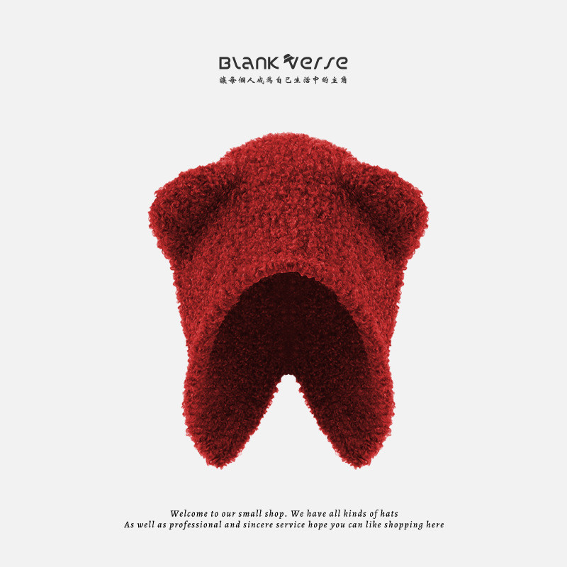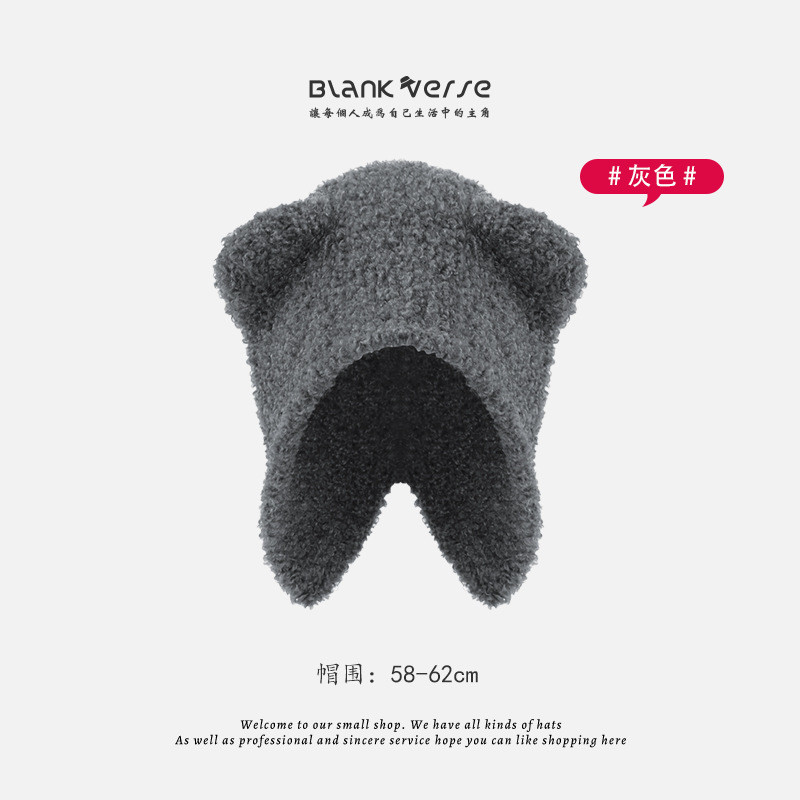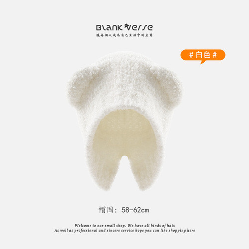 【Ready Stock】 Cute Bear Ears Plush Bonnet Female Autumn and Winter All-Matching Warm Ear Protection Cold-Proof Big Head Circumference Woolen Cap SUih