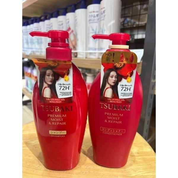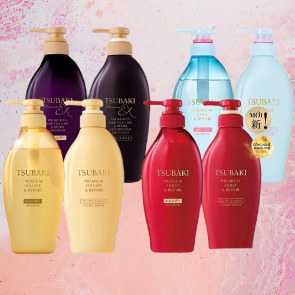 Dầu gội & xả Tsubaki Premium 450ml 1 chai có 4 màu ( Đỏ – Repair & Moist / Vàng – Volume & Repair / Tím / Đen )