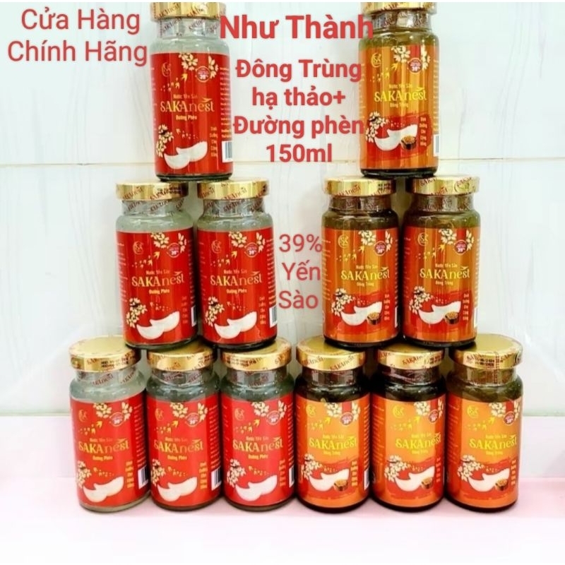 combo 10 lọ yến chưng Đông Trùng hạ thảo+ Đường phèn SAKAnest 150ml-39% Nước Yến Sào dành cho người lớn không hộp