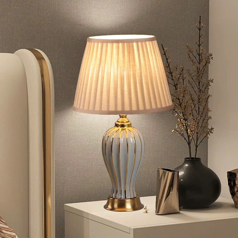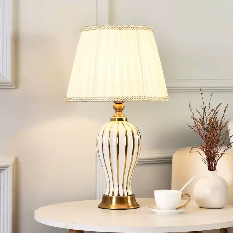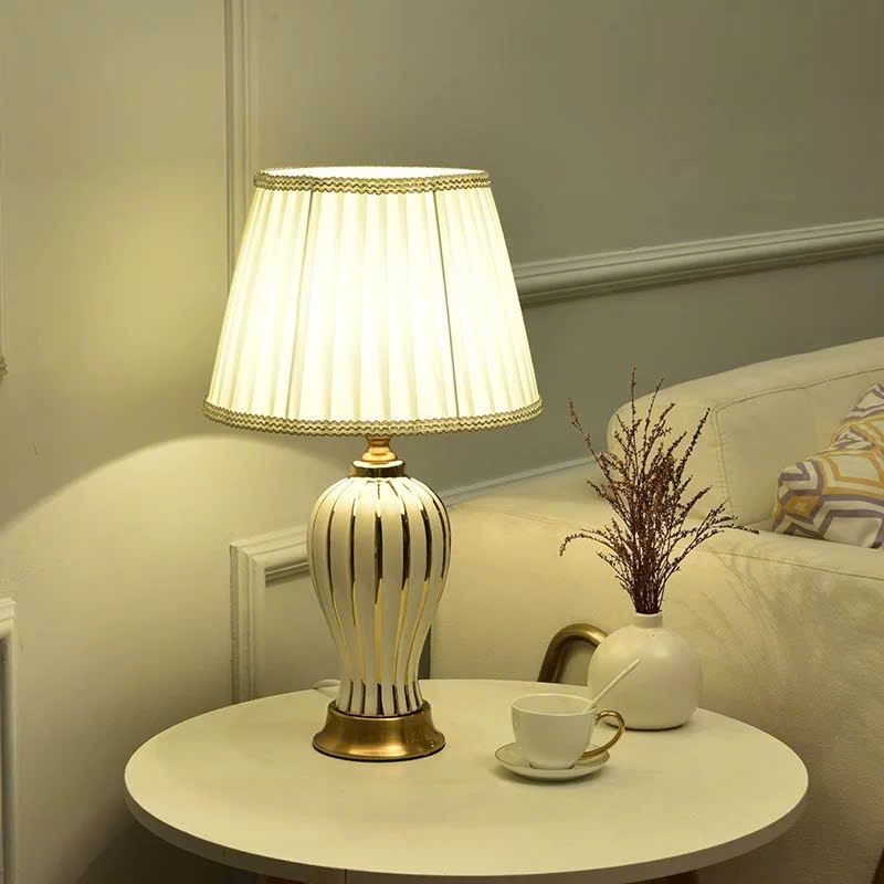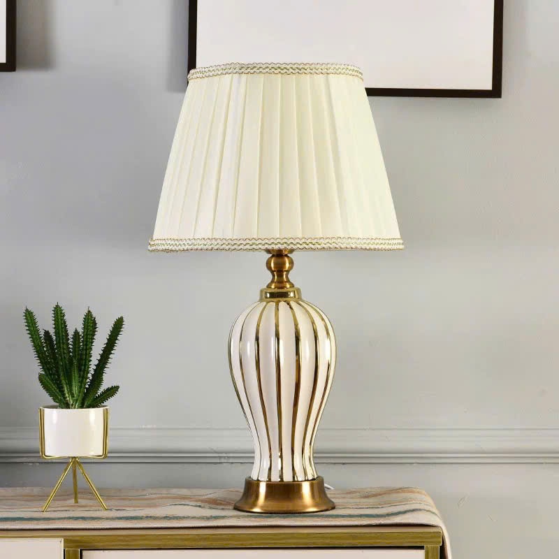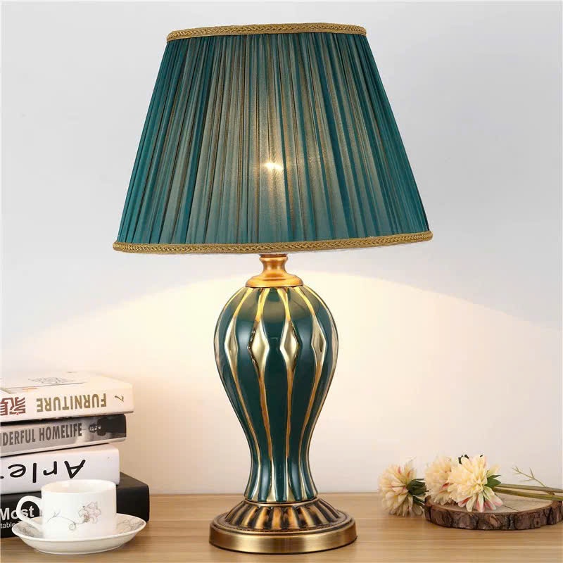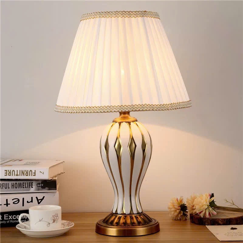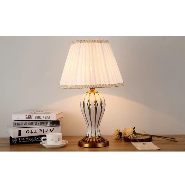 Đèn ngủ để bàn Trin Decor phong cách cổ điển thân sứ chao vải trang trọng cao cấp MKF48
