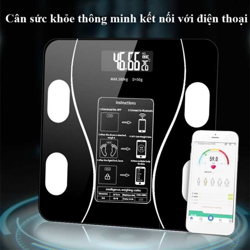 Cân Điện Tử Bluetooth Kết Nối APP điện thoại, Cân Sức Khỏe Thông Minh thế hệ mới
