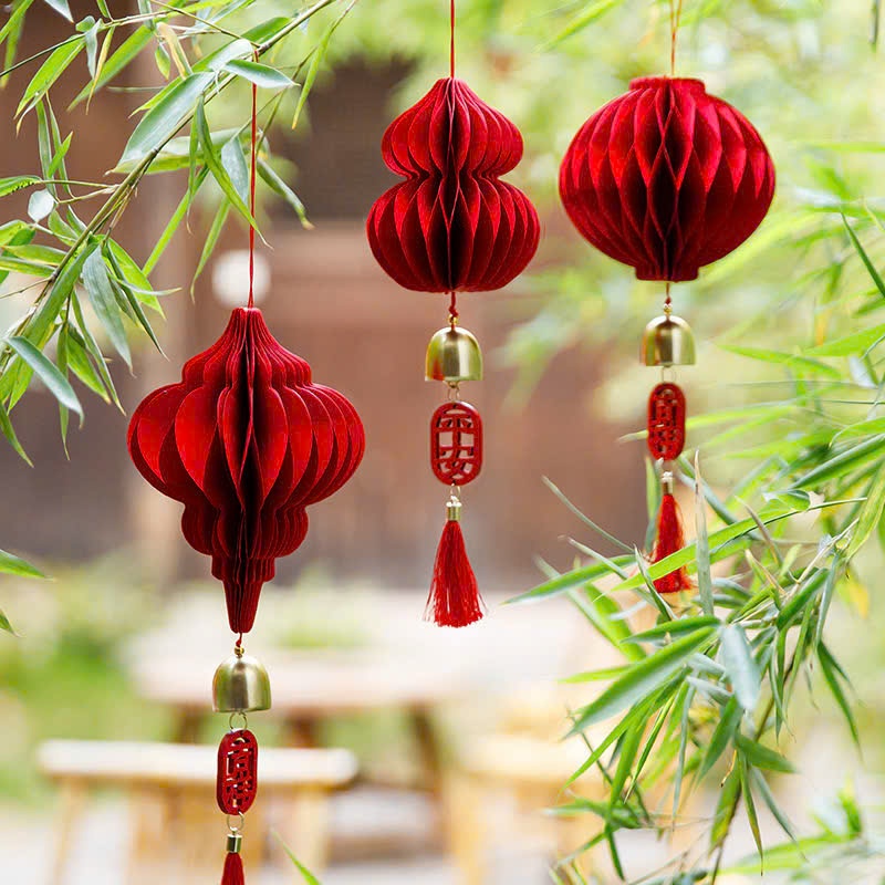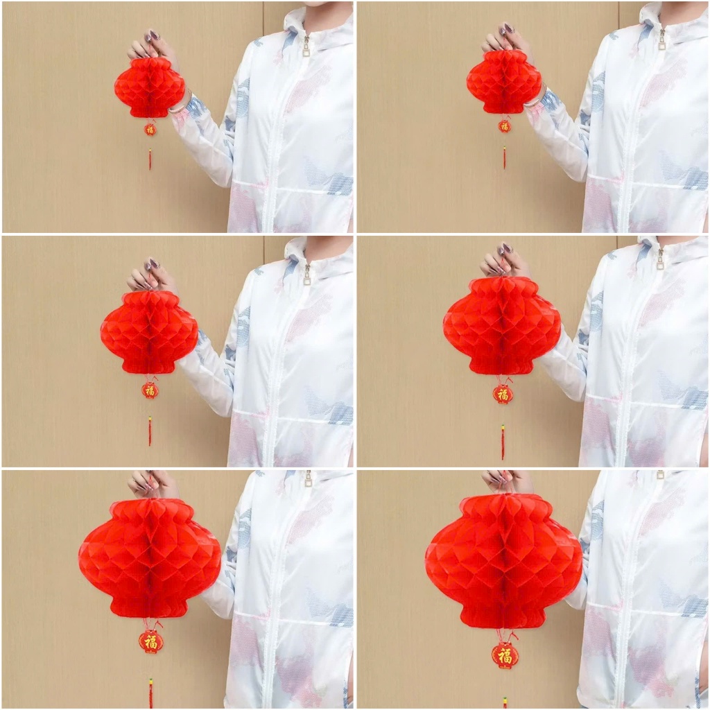 Đèn Lồng Tổ Ong Ni Lông Nilon MiNi Màu Đỏ Dùng Trang Trí Lễ Hội Tết Năm Mới Trung Thu Nhà Cửa