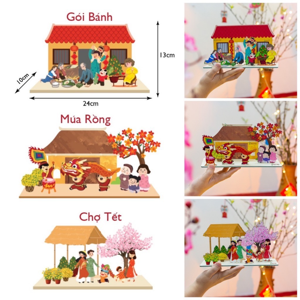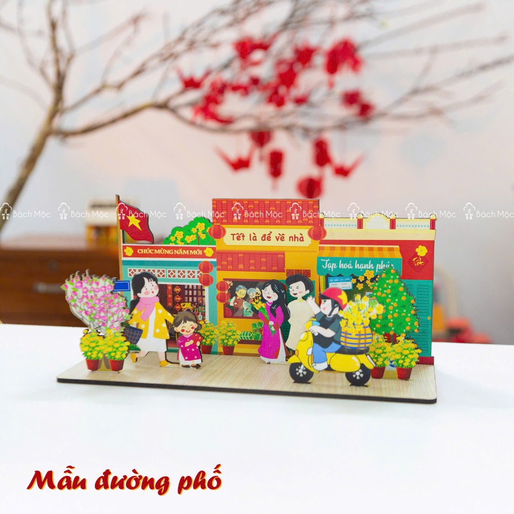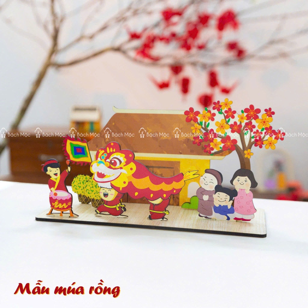 Bộ Lắp Ghép 3D Gỗ-Mô Hình 3D Gỗ Tự Tô màu Chủ Đề Tết Tự Lắp Ghép