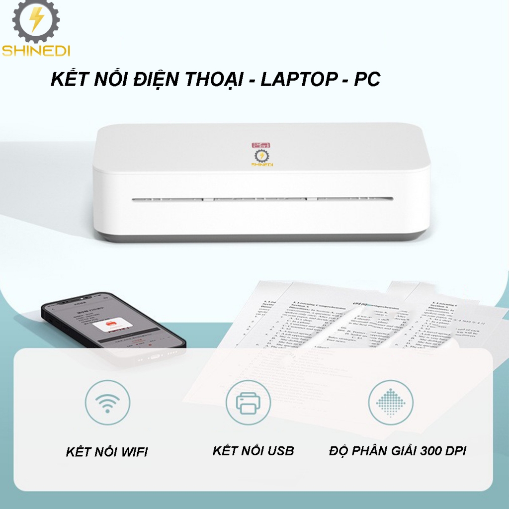 Máy in mini A4 di động GT1 SHINEDI giấy thông thường phù hợp văn phòng, học sinh, tài xế dễ sử dụng.