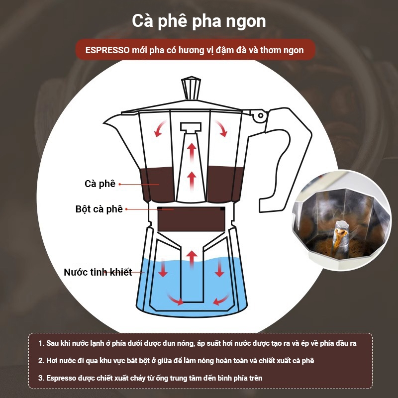 Bộ Ấm Pha Coffee Cà Phê Moka Espresso Beethoven Kiểu Ý tại Nhà ANCORNER Coffe