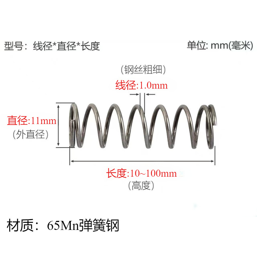 [Hyh] Lò xo nén mạnh mẽ Lò xo đệm màu vàng trở lại mềm Lò xo nén lớn Lò xo có thể tùy chỉnh Đường kính dây lò xo 1.0mm Đường kính ngoài 5-11mm Chiều dài 10-100mm
