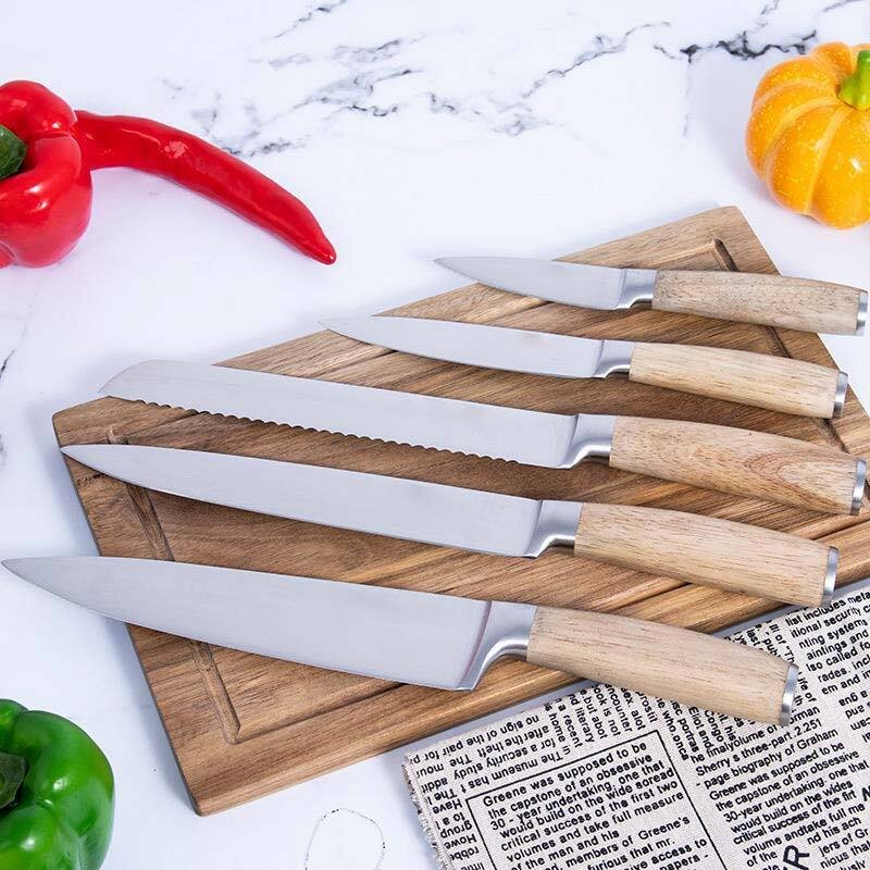 Nhà Máy Bán Hàng Trực Tiếp 6 Miếng Thép Không Gỉ Xử Lý Nhà Bếp Thiết Lập Với Chủ Sở Hữu Công Cụ Gỗ