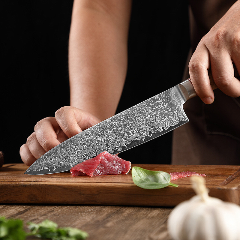 Cổ Phiếu 67 Lớp Pakka Gỗ Xử Lý Thép Chef Knife 7 Nhật Bản Damascus Kitchen Knife Set
