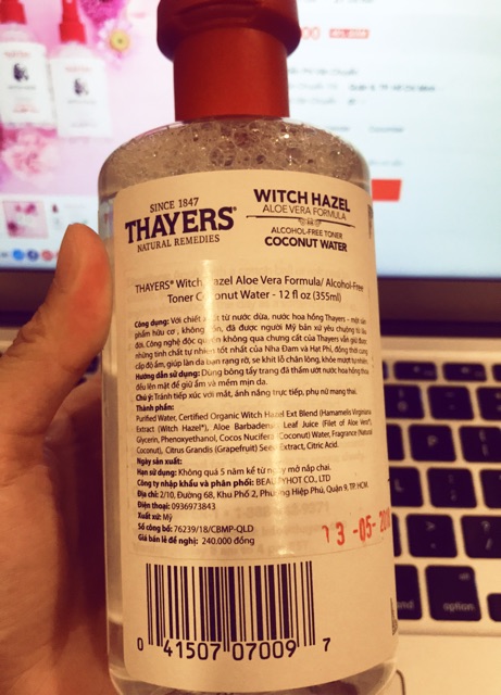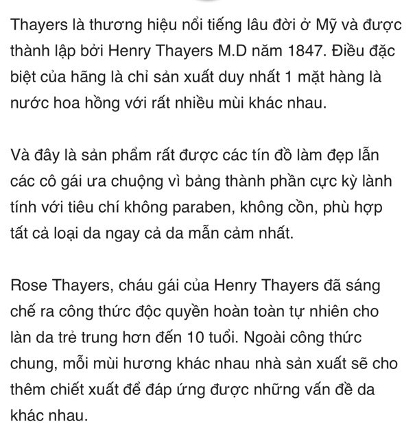 Toner và xịt khoáng không cồn Thayers - Nước hoa hồng Witch Hazel lành tính Thayer