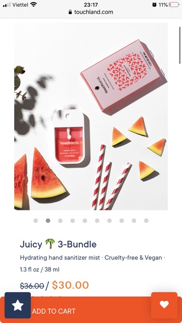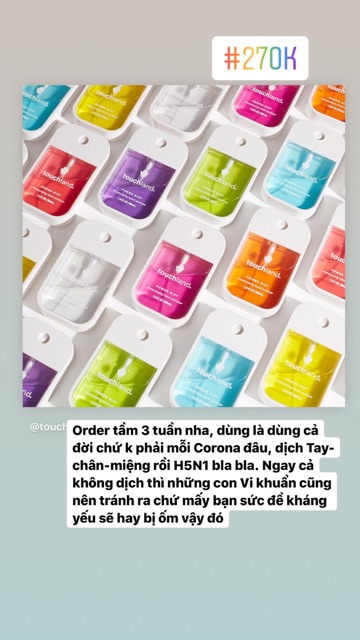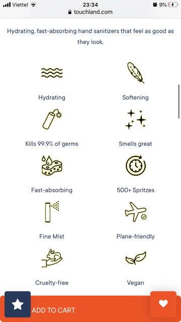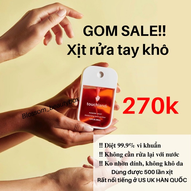 Nước xịt rửa tay khô Touchland hand sanitizer hàng US