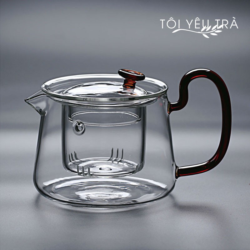 Ấm Pha Trà Thủy Tinh Có Lõi Lọc Quai Hổ Phách - 580ml