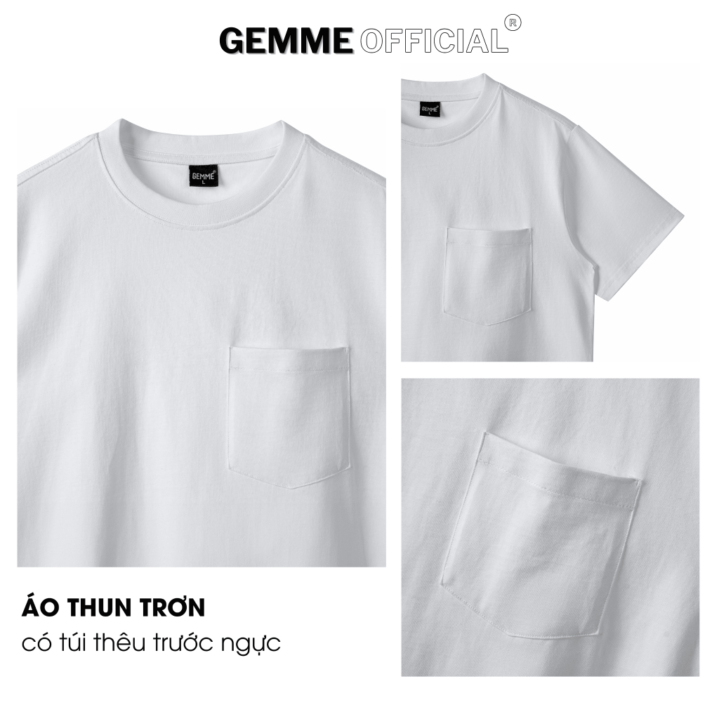 Áo thun trơn có túi big size 100% Cotton 250gsm GEMME MEN 55 - 150kg chuẩn form Unisex
