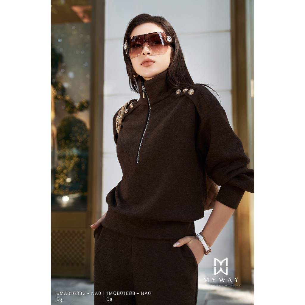 Set Bộ Áo Quần Nỉ Dạ Nữ MY WAY Dài Tay Thu Đông Cao Cấp 6MAB16332 -1MQB01883 - NA0
