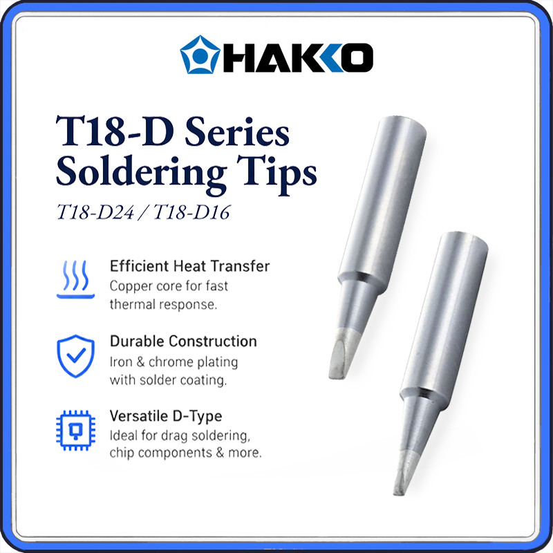 Hakko T18-D16 & T18-D24 Soldering Tips – Premium Chisel Tips for Hakko FX-888D, 936, 907 Stations | Copper Core, Iron & Tin Plated