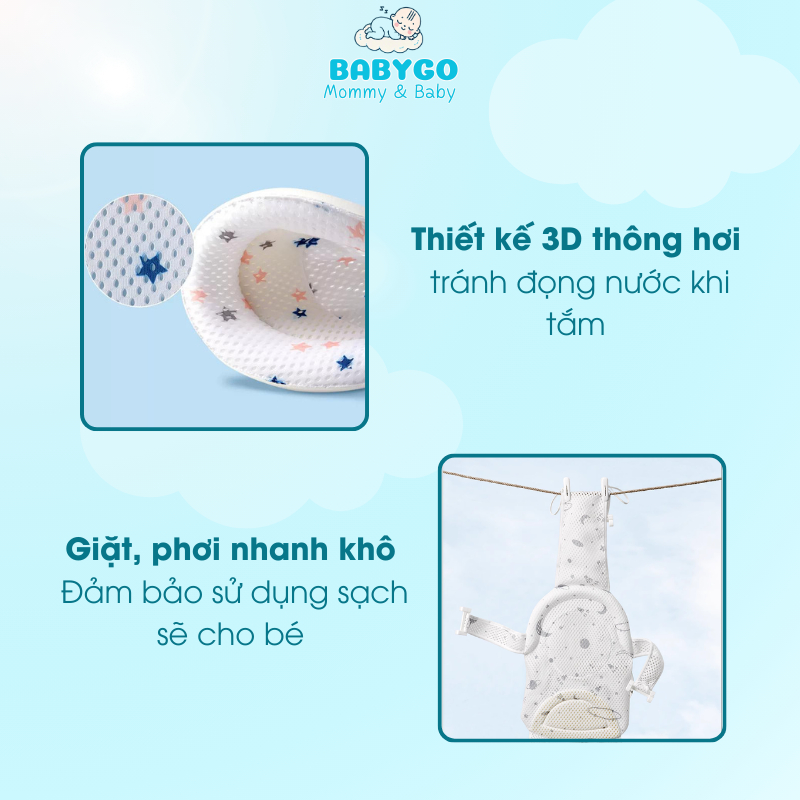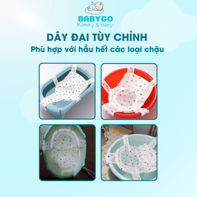 Lưới tắm bé sơ sinh, lưới tắm em bé, lưới tắm cho bé thông hơi thoáng khí Babygo có thể điều chỉnh