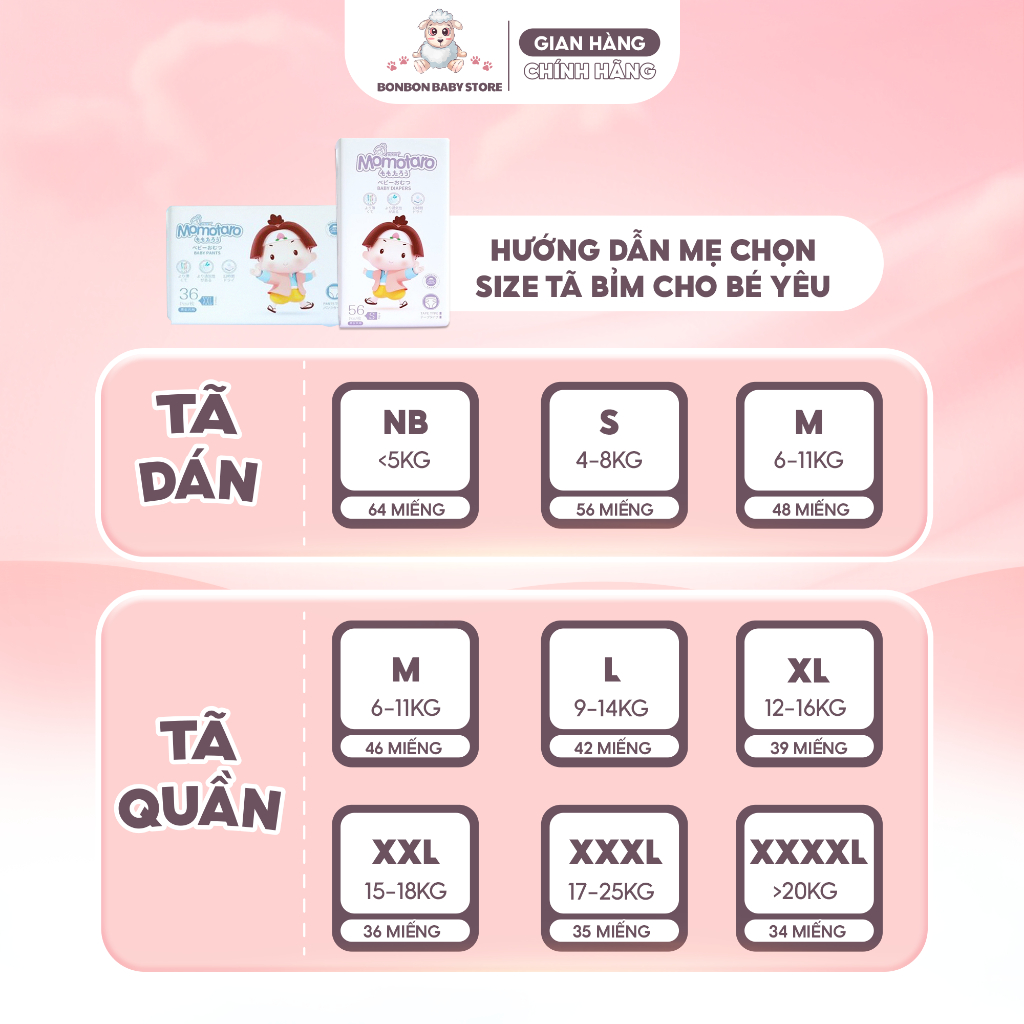[COMBO 2] Tã Bỉm MOMOTARO Mềm Mỏng, Thoáng Khí Full Size Cho Bé