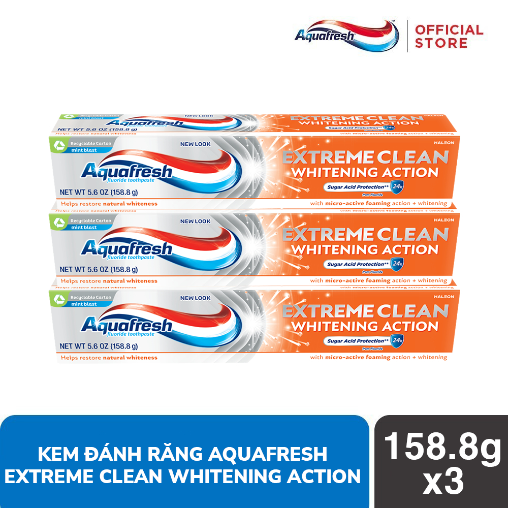 Bộ 3 Kem đánh răng Aquafresh EXTREME CLEAN WHITENING 158.7g/tuýp