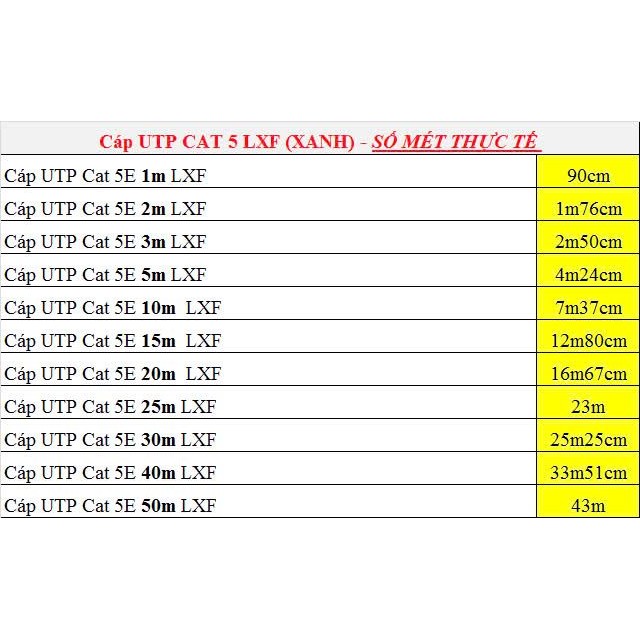 Cáp Mạng Có Đầu Bấm Sẵn (Màu Xanh) 15M/ 10M/ 5M/ 3M/ 2M/ 1M và Đầu nối cáp mạng. NL