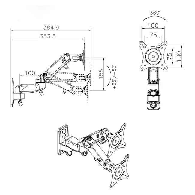 Giá treo tivi nhập khẩu nâng hạ NB F150 17-35 inch, xoay màn 360 độ, F120 17-27 inch tải 7kg