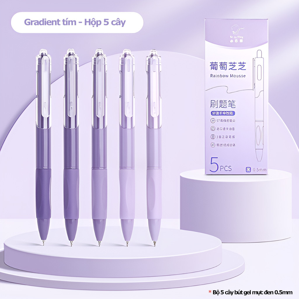 bút mực gel dạng bấm, bút khô nhanh, Bút Bi Nước Viết Gel Bấm mực, mực đen khô nhanh 0.5mm, 5 sự kết hợp màu sắc
